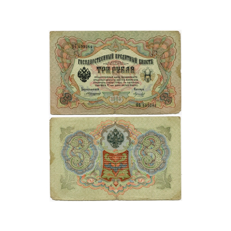 Банкнота Государственный кредитный билет 3 рубля тип 1905 г. Коншин