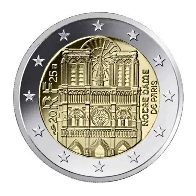 Монета 2 евро Франции 2025 г. Собор Парижской Богоматери