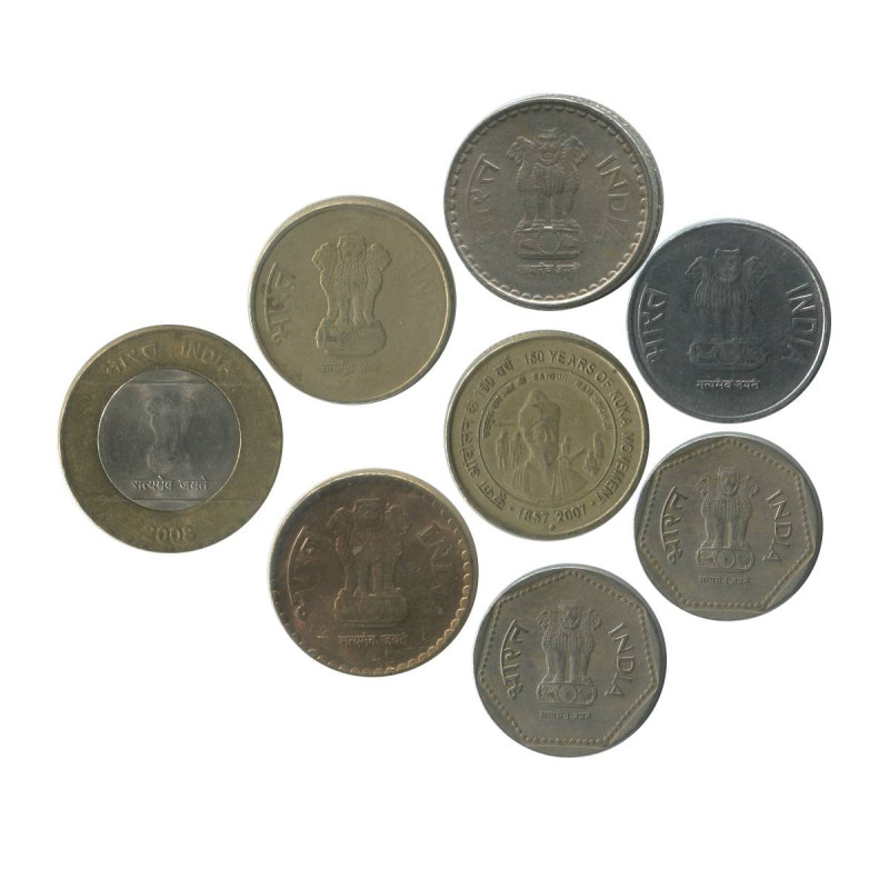 Набор монет Индии состоит из 8 монет разных металлов периода Республика Индия (1957 - 2025):