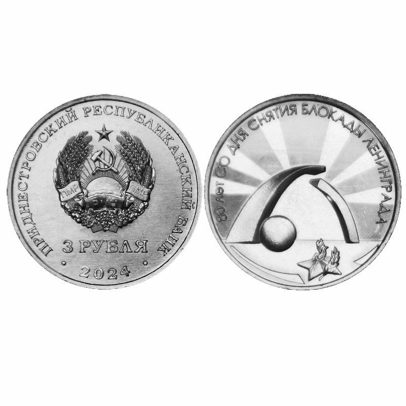Новая памятная монета 3 рубля Приднестровья 2024 года выпущена 29 января из серии "Великая Отечественная война 1941-1945 гг." называется 3 рубля Приднестровья 2024 г. 80 лет со дня снятия блокады Ленинграда.