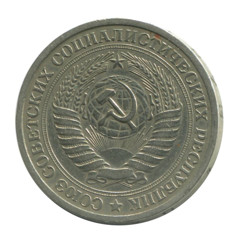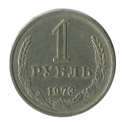 Аверс в центре монеты изображен герб СССР. Два равных снопа пшеницы по бокам, увязанных в семь лет с каждой из сторон. Пятнадцатая лента ажурной складкой закрепляет герб в нижней части.На фоне земного шара пересекаются крупный молот с серпом. Между верхушками колосьев располагается выпуклая звезда с пятью широкими лучами. Между двойным кругом и кантом слева направо - полное название государства. Первая и последняя буквы надписи разделены второй пятиконечной звездой, оказавшейся ровно у нижнего буртика монеты. Реверс в центре монеты номинал крупная цифра «1». Внутренняя поверхность её заполнена частыми горизонтальными линиями. Под цифрой указана денежная единица – «РУБЛЬ». Ниже – год выпуска «1973». Под центром даты – морская ракушка, «выпустившая» по бокам по одному зерновому колосу. Каждый из них снизу переложен тремя дубовыми листьями. На втором плане видны длинные тонкие ости.