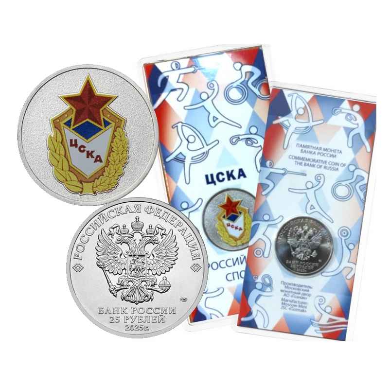 Монета 25 рублей 2025 г. ФК "ЦСКА" в цветном исполнении. Санкт-Петербургский монетный двор