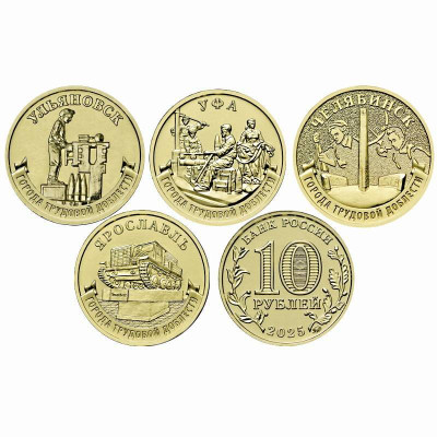Теги: Набор 10 рублей 2025 г. Города трудовой доблести. Ульяновск, Уфа, Челябинск, Ярославль