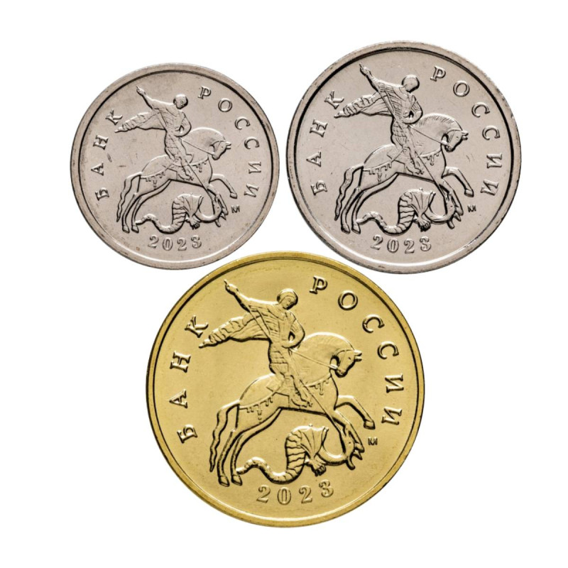 Набор состоит из 3 монет регулярного чекана периода Российская Федерация (1997 - 2025) Московского Монетного Двора: