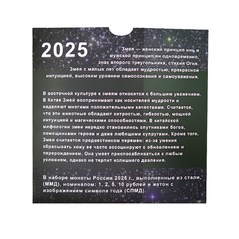 Теги: Набор разменных монет России с жетоном 2025 г. Год Змеи (в буклете)