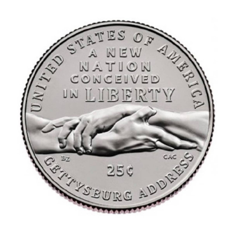 На реверсе изображены две руки, сцепленные друг с другом. Этот образ символизирует усилия Линкольна по сохранению единства нации и его призыв к американцам чтить память погибших и гарантировать, что "правительство народа, созданное народом и для народа, не исчезнет с лица земли".