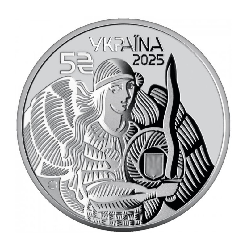 Аверс: стилизованную композицию дополняют малый Государственный Герб Украины и надписи "УКРАИНА", "2025", а также номинал "5" со знаком гривны. Завершает оформление эмблема Службы безопасности Украины и логотип Банкнотно-монетного двора.