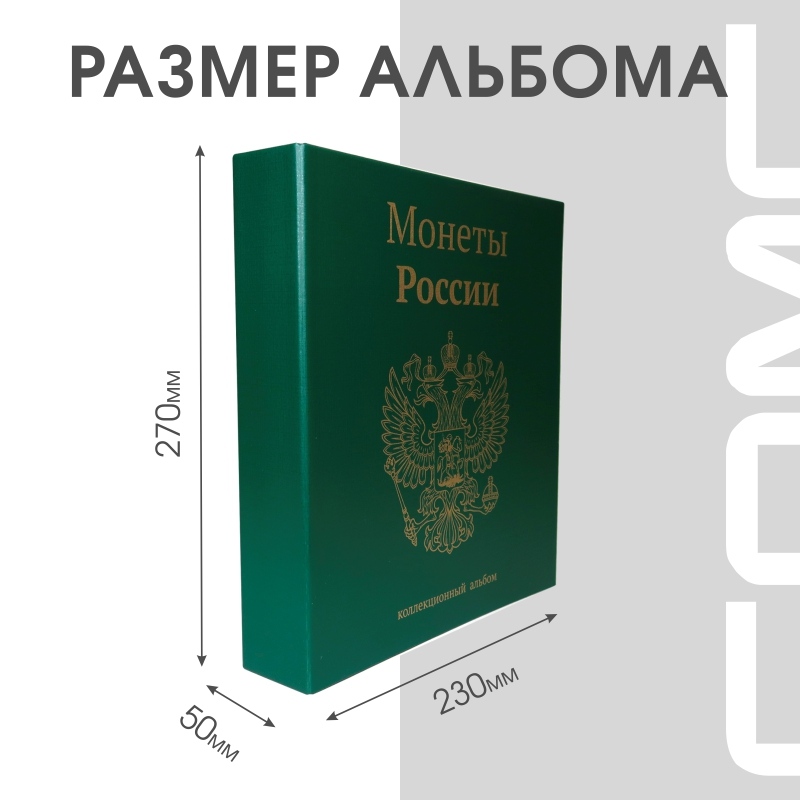 Альбом Стандарт формат Optima с широким корешком с изображением Герба России и надписью “Монеты России”