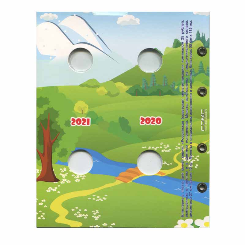 Лист для монет 25 рублей 2020 г. Крокодил Гена и 25 рублей 2021 г. Умка