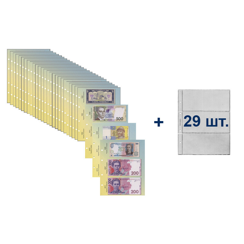 В комплекте 29 разделителей для бон Украины и 29 листов на 3 боны.