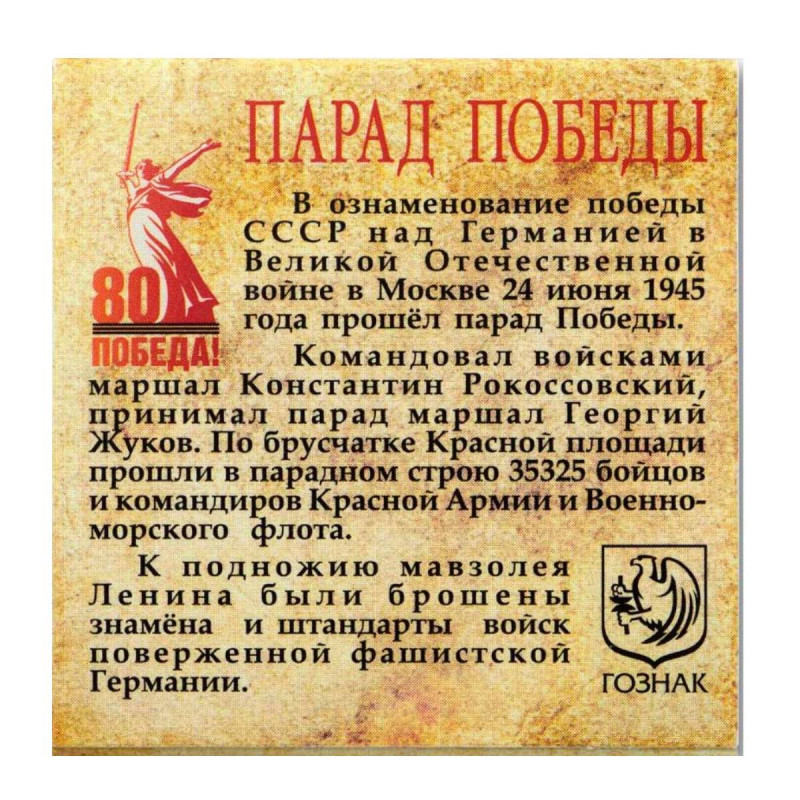 Жетон ГОЗНАК "80 лет Парад Победы" 2025 г. в тематической упаковке. Московский монетный двор