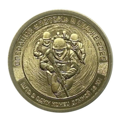 Монетовидный 73-й жетон Княжества Силенд 10 долларов 2025 г. Операция "Поток" в Судже