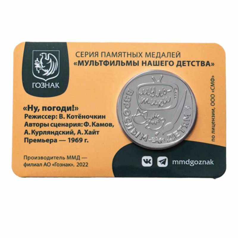 Жетон ГОЗНАК "Мультфильмы нашего детства - Ну, погоди!" 2020 г. в блистере