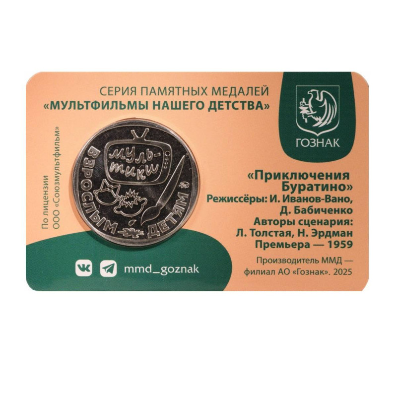 Жетон ГОЗНАК "Мультфильмы нашего детства - Приключения Буратино" 2025 г. (в блистере)