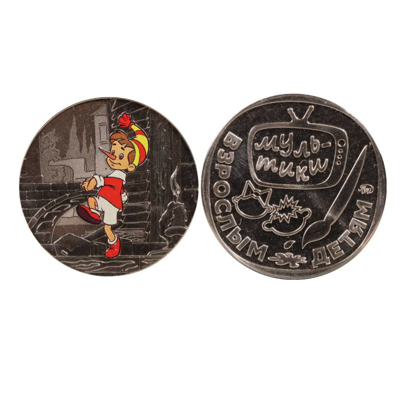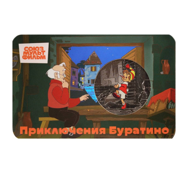 "Приключения Буратино" - 11 жетон серии "Мультфильмы нашего детства". Это совместный проект Московского монетного двора и киностудии "Союзмультфильм".